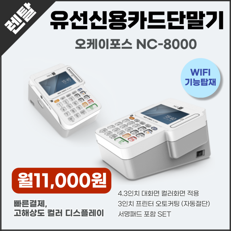 최신형 3인치 유선 카드단말기 오케이포스 NC-8000 Wifi 와이파이 가능(렌탈형)