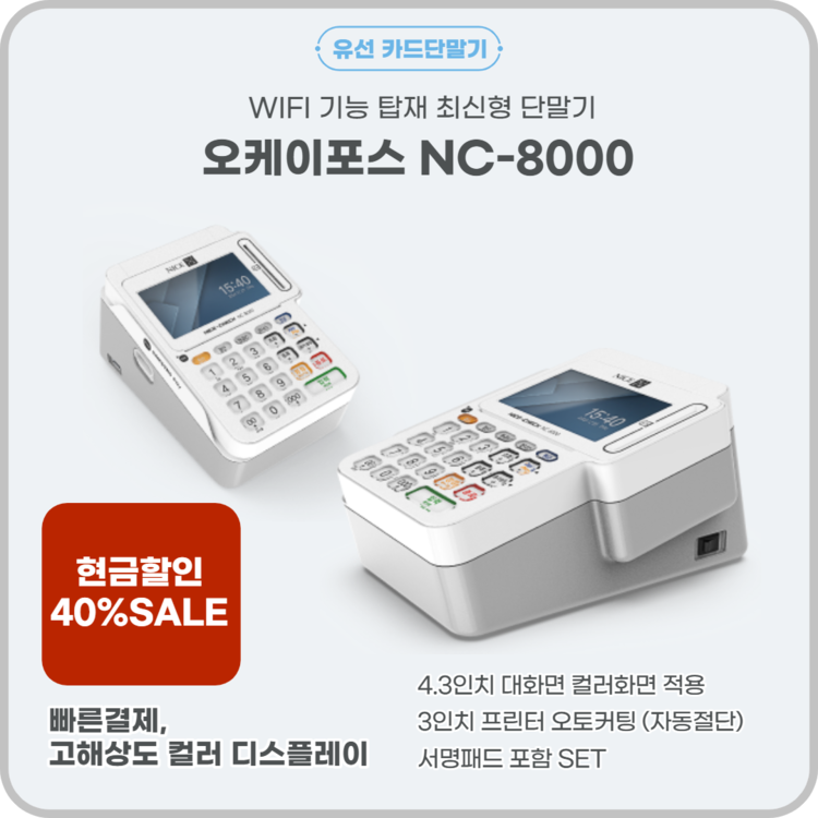 오케이포스 NC-8000 단말기본체 + 싸인패드