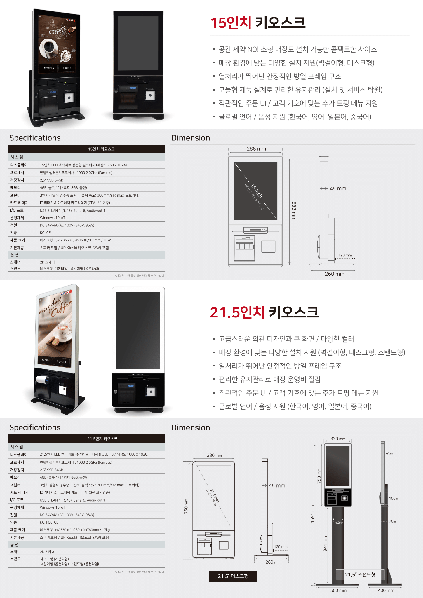 아임유 키오스크 본체 + 주방프린터