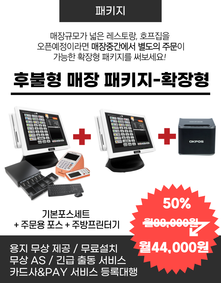기본포스세트 + 오더용포스 + 주방프린터기
